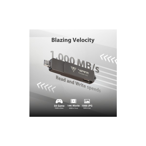 გარე მყარი დისკი: Patriot PVP30 512GB Duo Compact External Portable SSD Black - PVP30512G28UDG