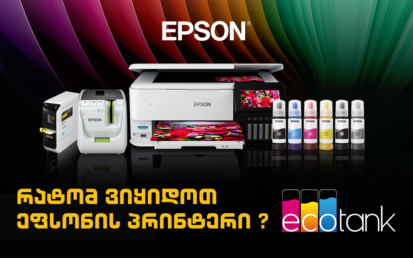 რაც მთავარია, არ აქვს მნიშვნელობა პრინტერი სახლისთვის გჭირდება, თუ ოფისისთვის. Epson-ის ბრენდით ნებისმიერი ზომის, ფორმისა თუ შესაძლებლობის პრინტერს იპოვი. მათი პროდუქციის ხაზის მრავალფეროვნება უზრუნველყოფს, რომ იპოვო პრინტერი, რომელიც სრულყოფილად შეესაბამება შენს მოთხოვნებს.
