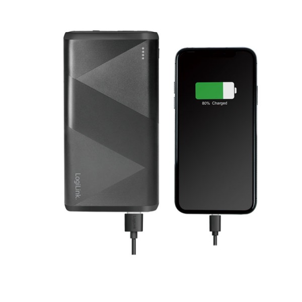 დამტენი: Logilink PA0275 Power bank 10000mAh 1x USB-A QC 3.0 & 1x USB-C PD 2.0 2-in-1 cable Black