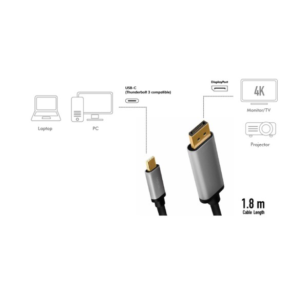 კაბელი: Logilink CUA0100 USB-C to DisplayPort 4K/60Hz Cable Adapter 1.8m