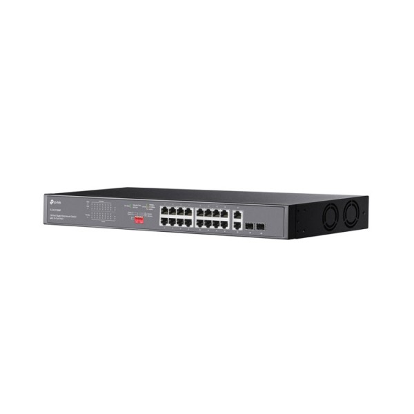| ინტერფეისი | 16 x PoE+ gigabit RJ45 ports, 2 x Combo Gigabit SFP Slots, 2 x 10/100/1000 Mbps RJ45 Ports |