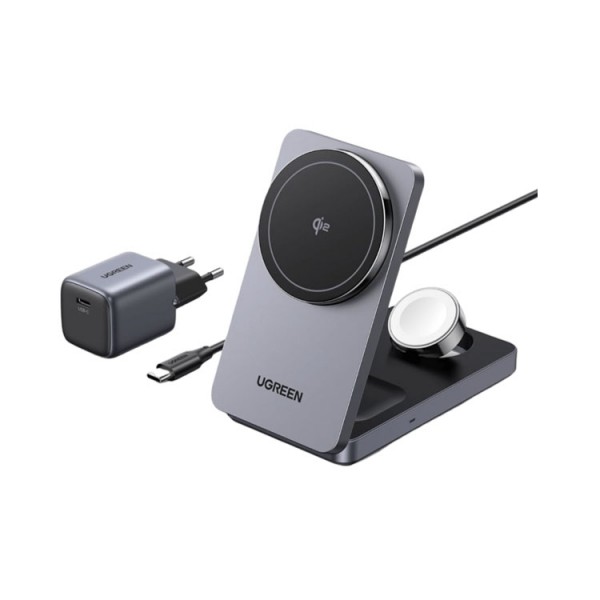 დამტენი: UGREEN W707 15W Wireless Charging Station With 30W USB-C Charger Space gray - 45025