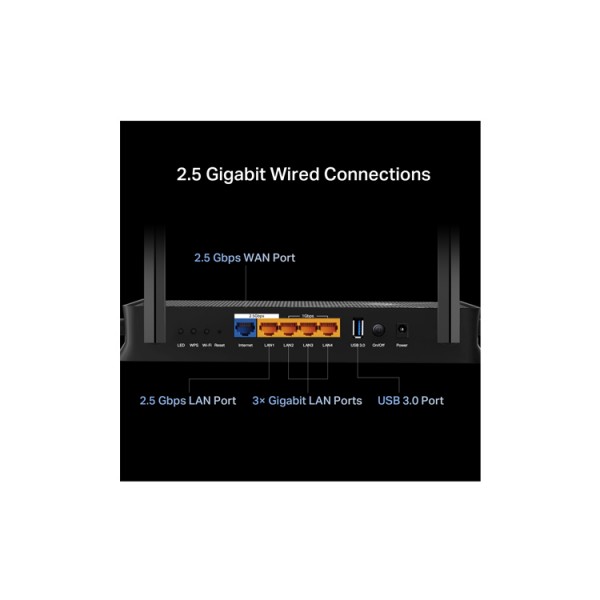 | ინტერფეისი | 1 x 2.5 Gbps WAN Port, 1 x 2.5 Gbps LAN Port, 1 x USB 3.0, 3 x 1 Gbps LAN Port |