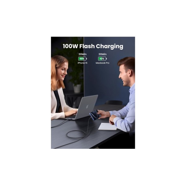 კაბელი: UGREEN L512 USB Type-C PD 100W Fast Charging Cable 2m Space Gray - 45064