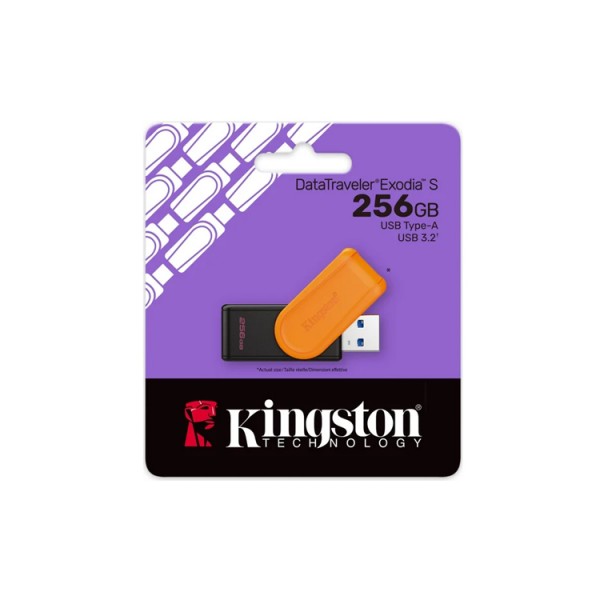 ფლეშ მეხსიერება: Kingston DataTraveler Exodia S 256GB USB 3.2 Black/Orange - DTXS/256GB
