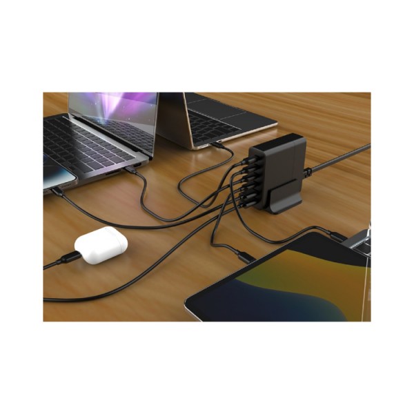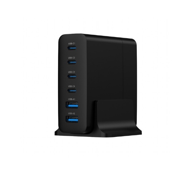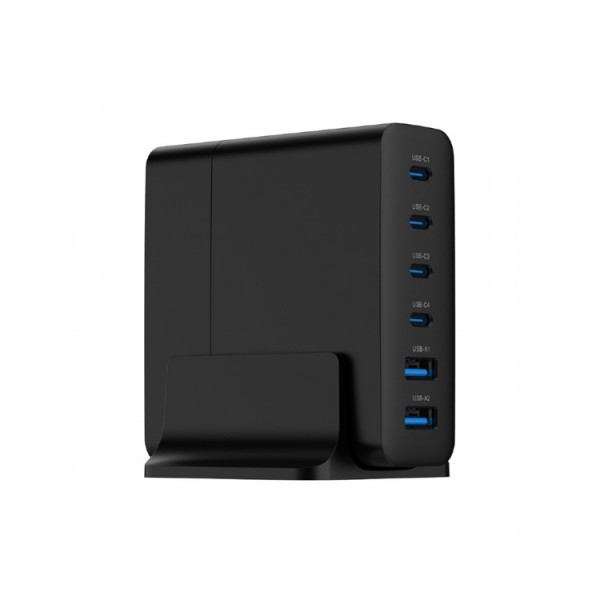 დამტენი: Gembird TA-UC-2A4C-PD75-01-BK 6-port 75W GaN USB fast charger Black