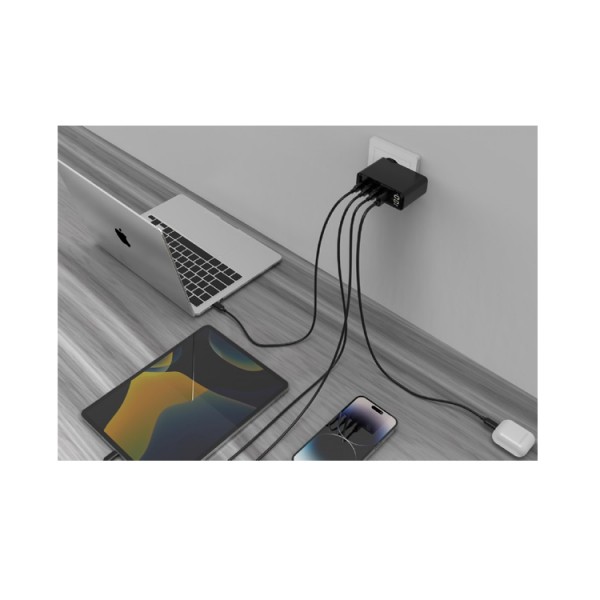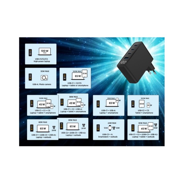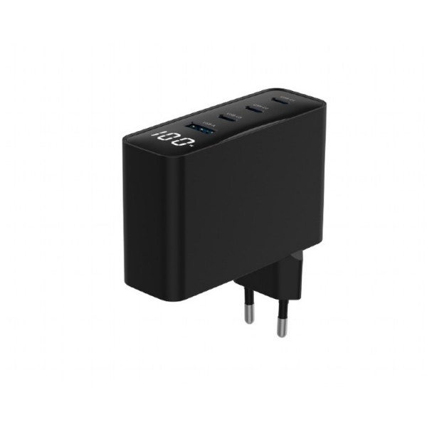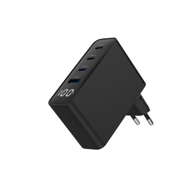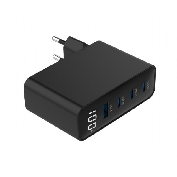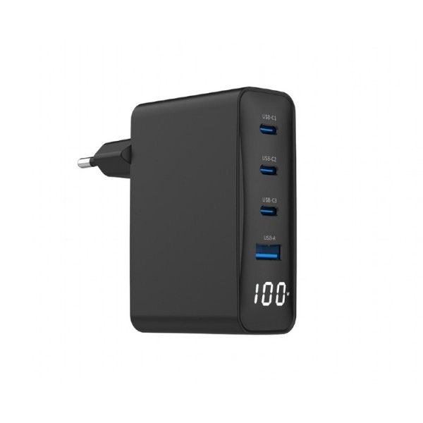 დამტენი: Gembird TA-UC-PDQC100LCD-01-BK 4-port 100W GaN USB fast charger LCD Black