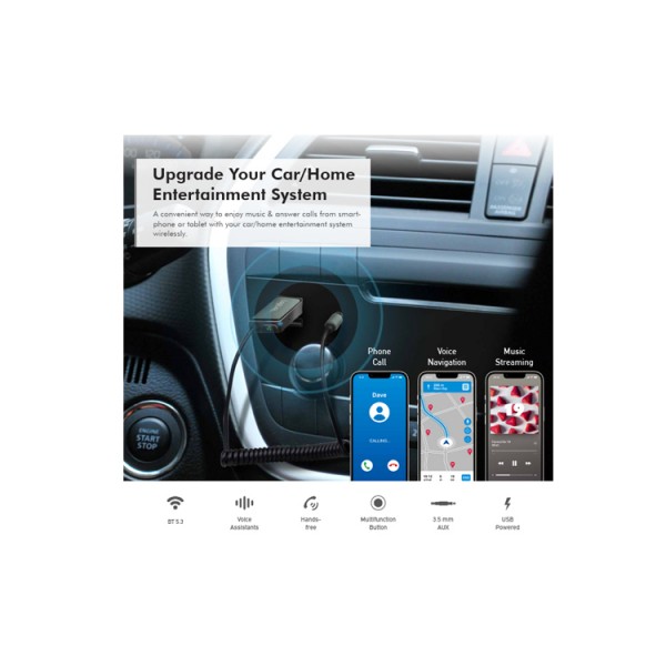 ადაპტერი: Logilink BT0065 Wireless Audio Receiver for Vehicles With 3.5mm AUX & USB Connector