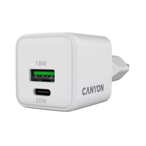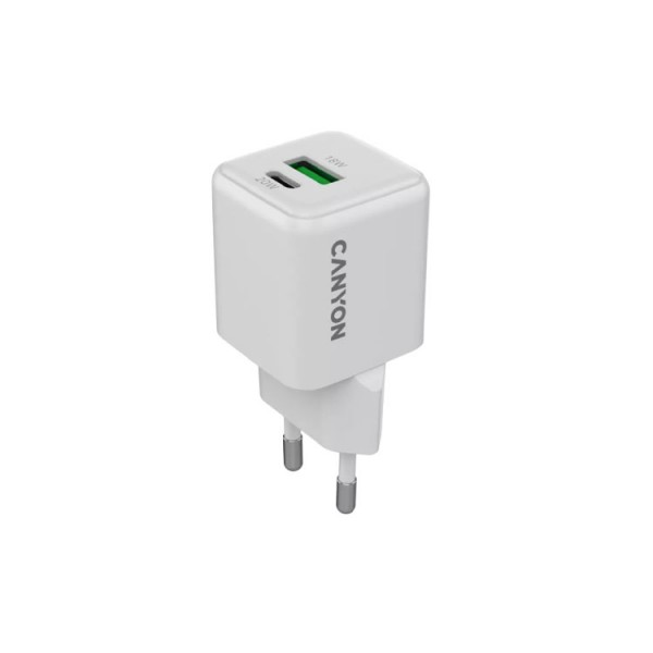 დამტენი: Canyon CU20AC USB/USB-C GaN Fast Wall Charger 20W White - CNS-CUW20AC