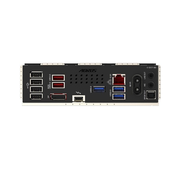 | უკანა I/O პორტები | 1 x optical S/PDIF Out connector, 1 x Intel® Thunderbolt™ 4 (Note 2) connector (USB4® USB Type-C® port), 1 x DisplayPort, 3 x USB 3.2 Gen 1 ports, 2 x audio jacks, 4 x USB 2.0/1.1 ports, 2 x antenna connectors (2T2R), 2 x USB 3.2 Gen 2 Type-A ports (red), 1 x LAN (RJ-45) |