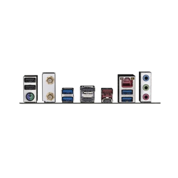 | უკანა I/O პორტები | 1 x Q-Flash Plus button, 1 x USB Type-C® port, with USB 3.2 Gen 2 support, 1 x DisplayPort, 3 x audio jacks, 2 x SMA antenna connectors (2T2R), 1 x PS/2 keyboard/mouse port, 1 x HDMI, 4 x USB 3.2 Gen 1 ports, 1 x LAN (RJ-45), 1 x USB 3.2 Gen 2 Type-A port (red), 2 x USB 2.0/1.1 ports |