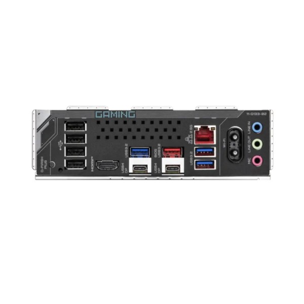 | უკანა I/O პორტები | 4 x USB 2.0/1.1 ports, 2 x USB4® USB Type-C® ports (DisplayPort*), 3 x audio jacks, 1 x HDMI port (Note), 1 x USB 3.2 Gen 2 Type-A port (red), 2 x antenna connectors (2T2R), 3 x USB 3.2 Gen 1 ports, 1 x LAN (RJ-45), 1 x Q-Flash Plus button |