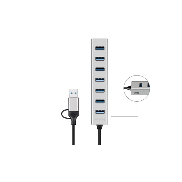 USB ჰაბი: Logilink UA0441 USB-C 7-Port Hub 5Gbps Silver
