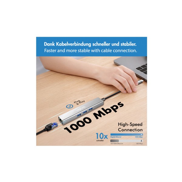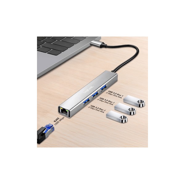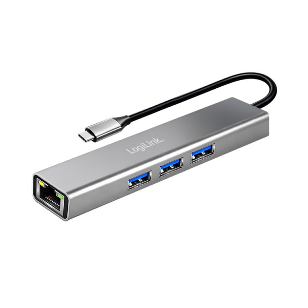 USB ჰაბი: Logilink UA0461 USB-C 3-Port Hub Gigabit Adapter 15cm