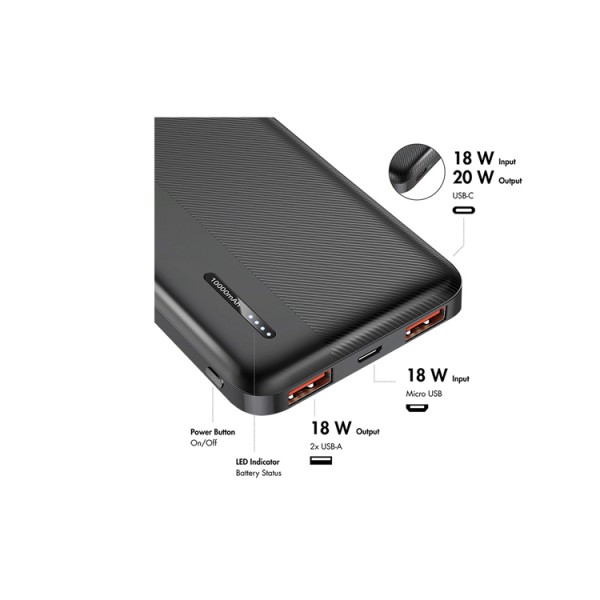 დამტენი: Logilink PA0372 10.000 mAh PD 20W Power Bank Black
