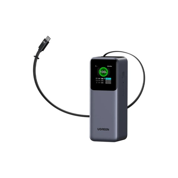 დამტენი: UGREEN PB726 20000mAh 165W Power Bank with Retractable Cable Grey - 55987B