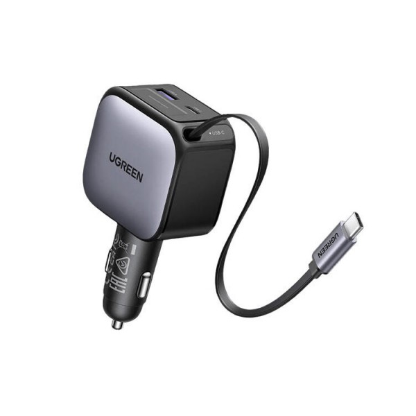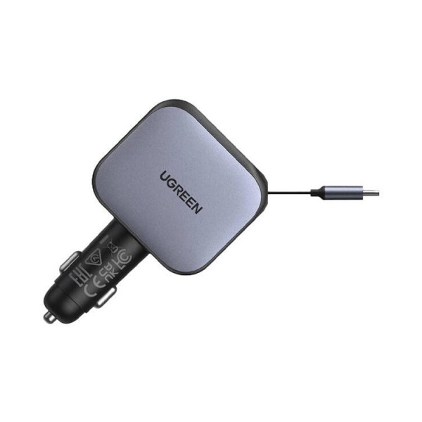 მანქანის დამტენი: UGREEN EC602 60W Car Charger With Retractable Type-C Cable Grey - 55212B