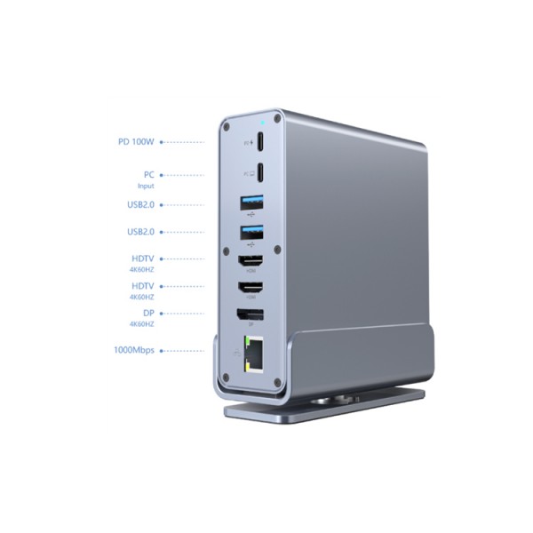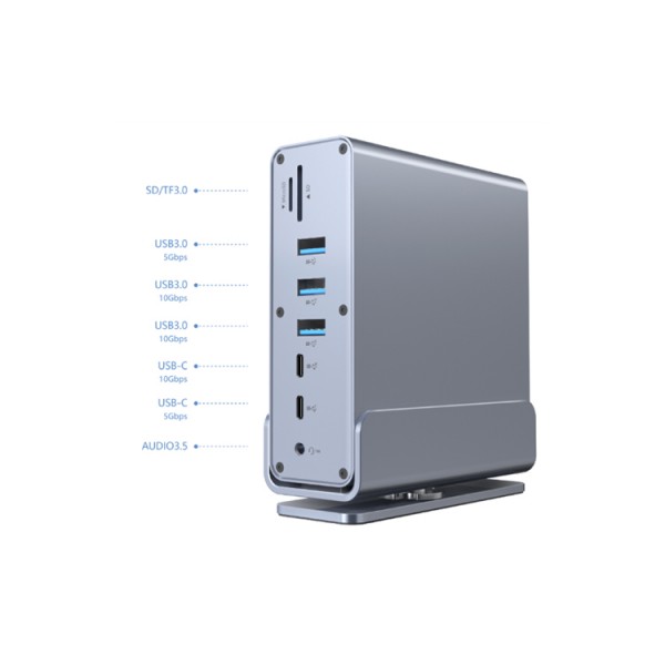 | ინტერფეისი | 1 x SD and Micro-SD card reader/writer, 1 x USB 3.2 Gen 2 (10 Gbps) Type-C port, 2 x HDMI ports with UHD 4K/60 Hz support, 1 x DisplayPort 4K/60Hz video port, 2 x USB 2.0 (480 Mbps), 1 x 3.5 mm stereo audio output, 1 x USB 3.1 Gen 1 (5 Gbps), USB Type-C ports: power PD input port + data port from PC, 1 x Gigabit LAN port (RJ-45), 1 x USB 3.1 Gen 1 (5 Gbps) Type-C port, 2 x USB 3.2 Gen 2 (10 Gbps) |