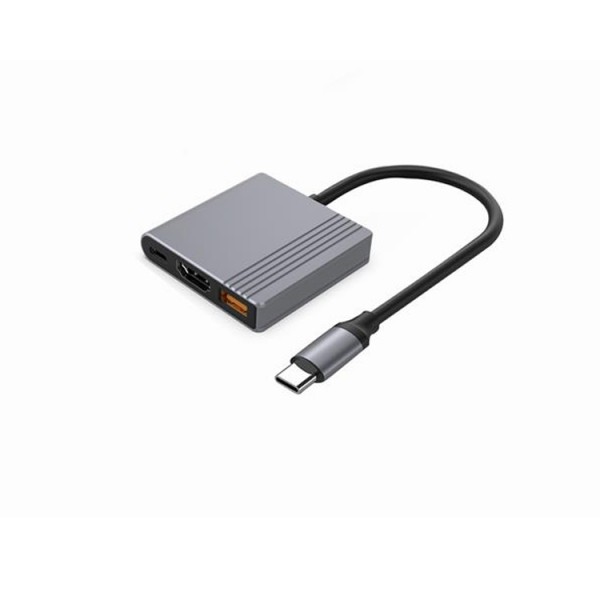 ადაპტერი: Gembird A-CM-COMBO3-05 USB Type-C 3-in-1 multi-port Adapter (USB port+HDMI+USB-C video) Space Grey
